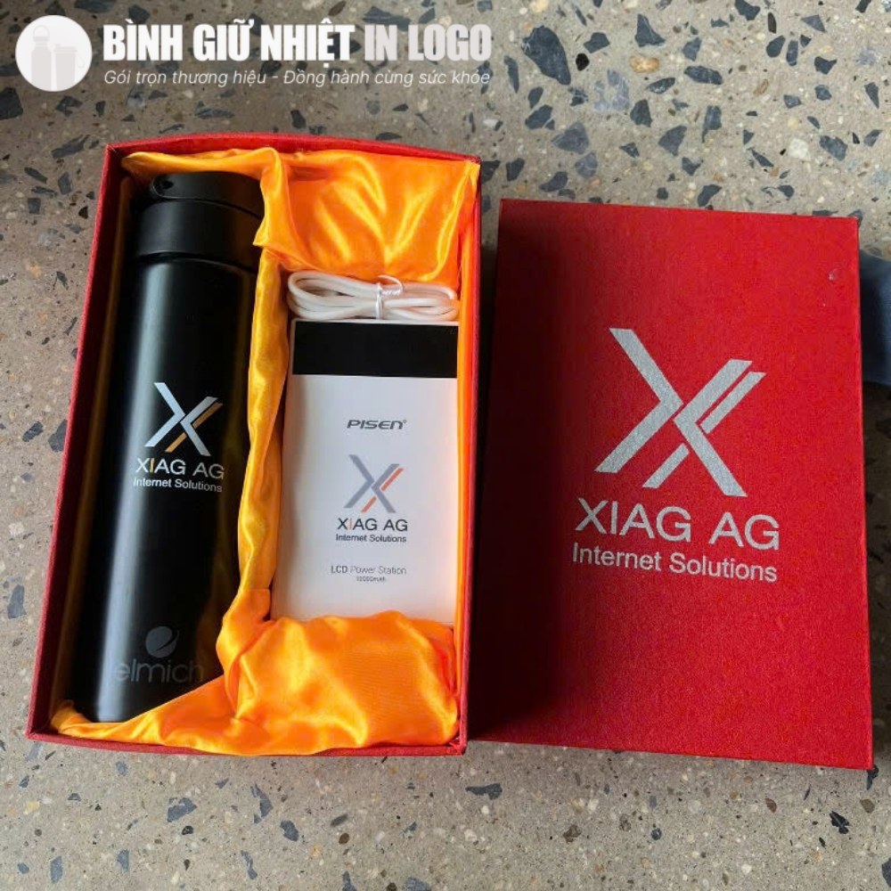 Combo quà tặng giftset bình giữ nhiệt, sạc dự phòng in logo thương hiệu