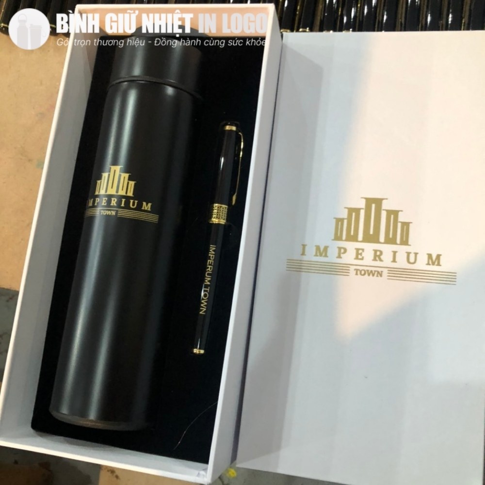 Combo quà tặng bình giữ nhiệt và bút ký in logo đồng bộ